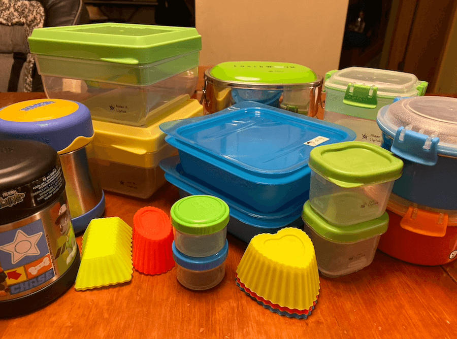 굳이 구분을 할 필요는 없지만 어떤 종류의 점심을 싸주느냐에 따라 맞다기보다는 보다 적절한 쓰임이 있는 용기들이 있다. 예를들어 샌드위치를 싸면 플라스틱 용기도 괜찮지만 따뜻하게 먹었으면 하는 맥앤치즈나, 주먹밥, 치킨누들슾등은 보온병을 사용한다. 그리고 오븐에서 막 꺼낸 치킨너겟이나 콘독corn dog(우리가 부르는 그 핫도그), 핏자등은 따뜻한채로 플라스틱 용기에 넣는것이 찝찝해서 스테인리스를 사용한다. 급한데 식혀서 넣을 시간이 없을때의 말이다. 넛nuts이나 케쳡, 샐러드 드레싱을 넣을 작은 용기도 필수이다. 참고하시라고 우리 아이들의 도시락 용기를 찍어보았다.